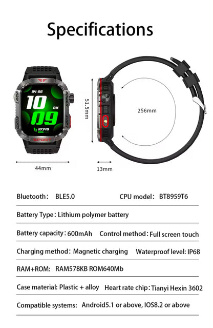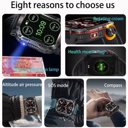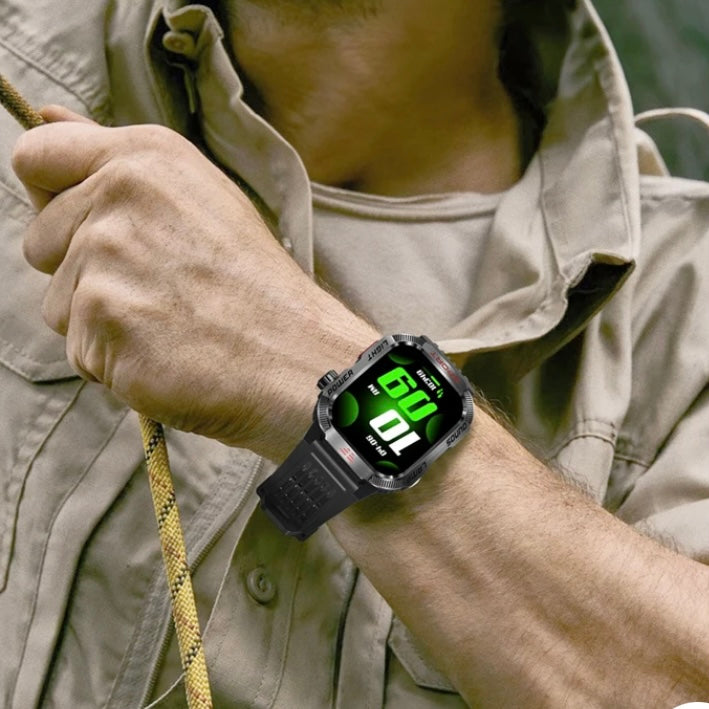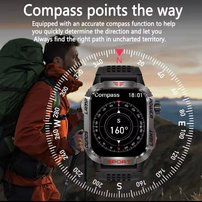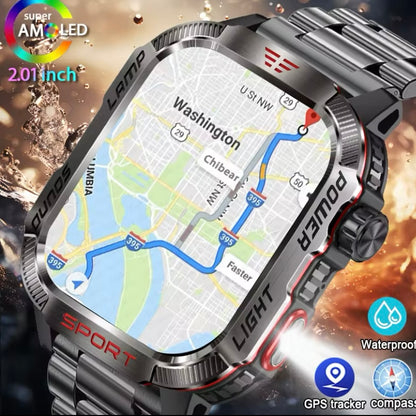 Ben je op zoek naar een stijlvolle en krachtige smartwatch die jouw actieve levensstijl ondersteunt? Deze waterdichte smartwatch biedt hartslagmonitoring, fitness-tracking, een ingebouwde zaklamp, en zelfs een kompas voor al je avonturen! Met Bluetooth-bellen, een lange batterijduur en een helder 2,01-inch display, blijf je altijd verbonden en in controle.