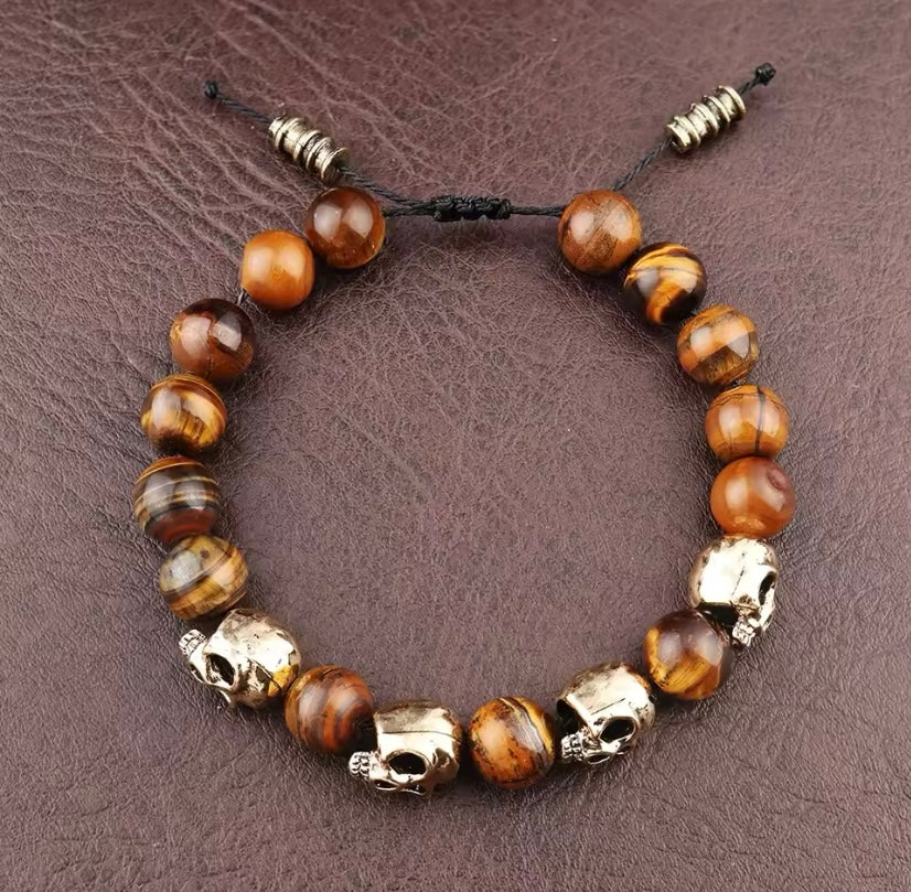 Onze trendy vintage agaat schedel armband voor heren combineert stoerheid en verfijning. Deze handgemaakte armband is verstelbaar en bevat hoogwaardige tijgeroog stenen, perfect voor mannen die houden van punk en hiphop charme sieraden. De unieke agaat schedel geeft een gedurfde en edgy look, ideaal om je persoonlijkheid te benadrukken.