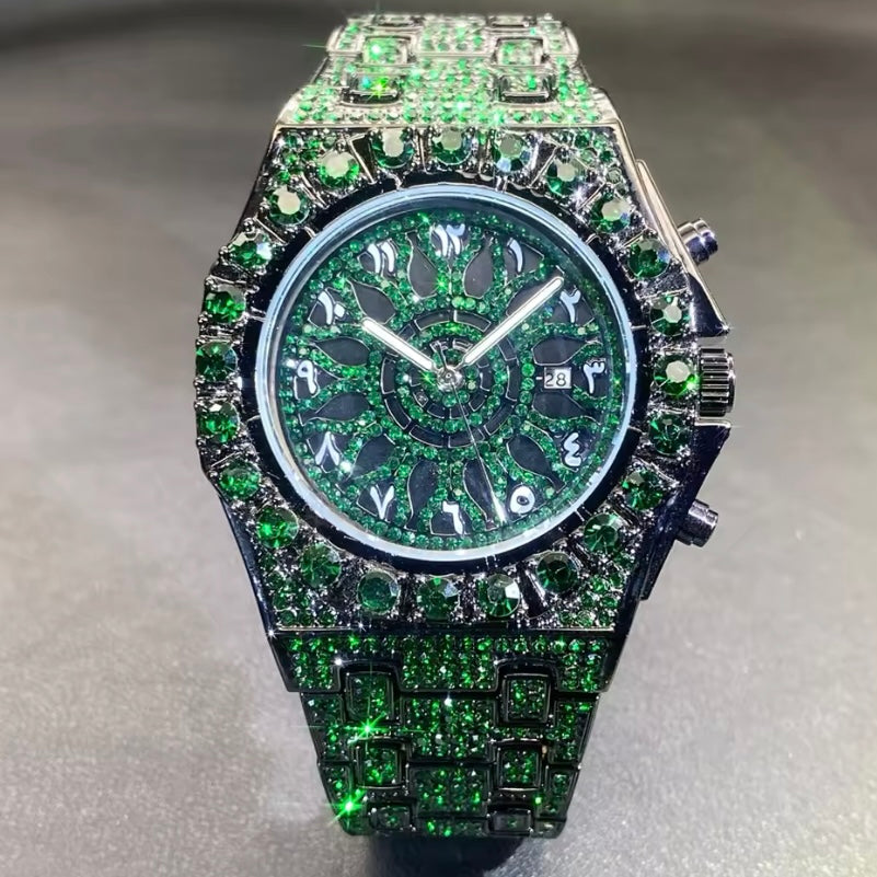 Dit luxe gouden herenhorloge is een waar meesterwerk van stijl en vakmanschap. De iced armband en volledige diamanten geven het horloge een opvallende uitstraling die elke man verdient. Het waterdichte roestvrij staal zorgt voor duurzaamheid en betrouwbaarheid, terwijl de nieuwe wijzerplaat een eigentijdse touch toevoegt. Of je nu een formele gelegenheid bijwoont of je dagelijkse look wilt upgraden, dit horloge past perfect bij iedere gelegenheid. Een luxe klok die ook het ideale cadeau is voor de man die van stijl en kwaliteit houdt.