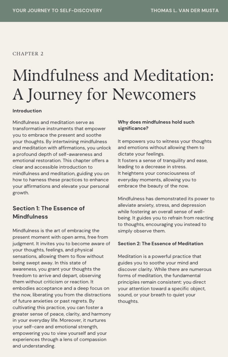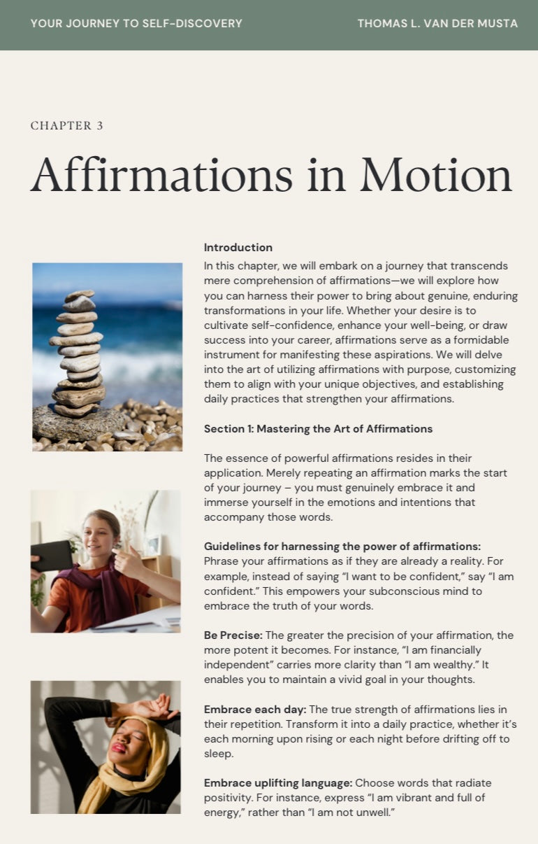 Discover a 52-page eBook filled with powerful tools for personal growth, such as affirmations, mindfulness, and meditation. Lay the foundation for a fulfilled and balanced life, stay true to yourself, and grow step by step into your best self.